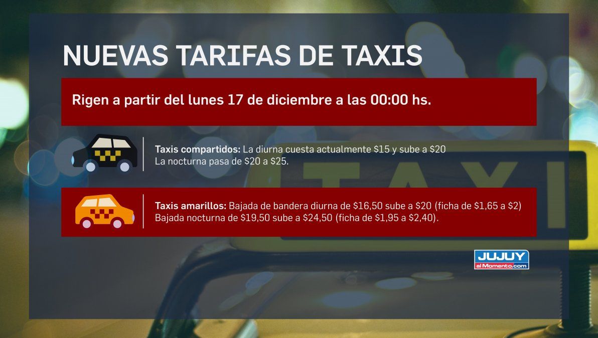 Para los taxis radio llamada, la bajada de bandera durante el día pasó de $16,50 a $20, mientras que la ficha cada 100 metros sube de $1,65 a $2. Por la noche, a bajada de bandera aumentó de $19,50 a $24,50, mientras que la ficha cada 1 km sube de $1,95 a 2,40.