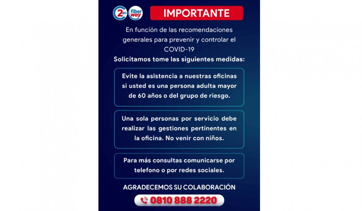 Las consultas se podrán realizar a través de nuestro teléfono al 0810 888 2220.
