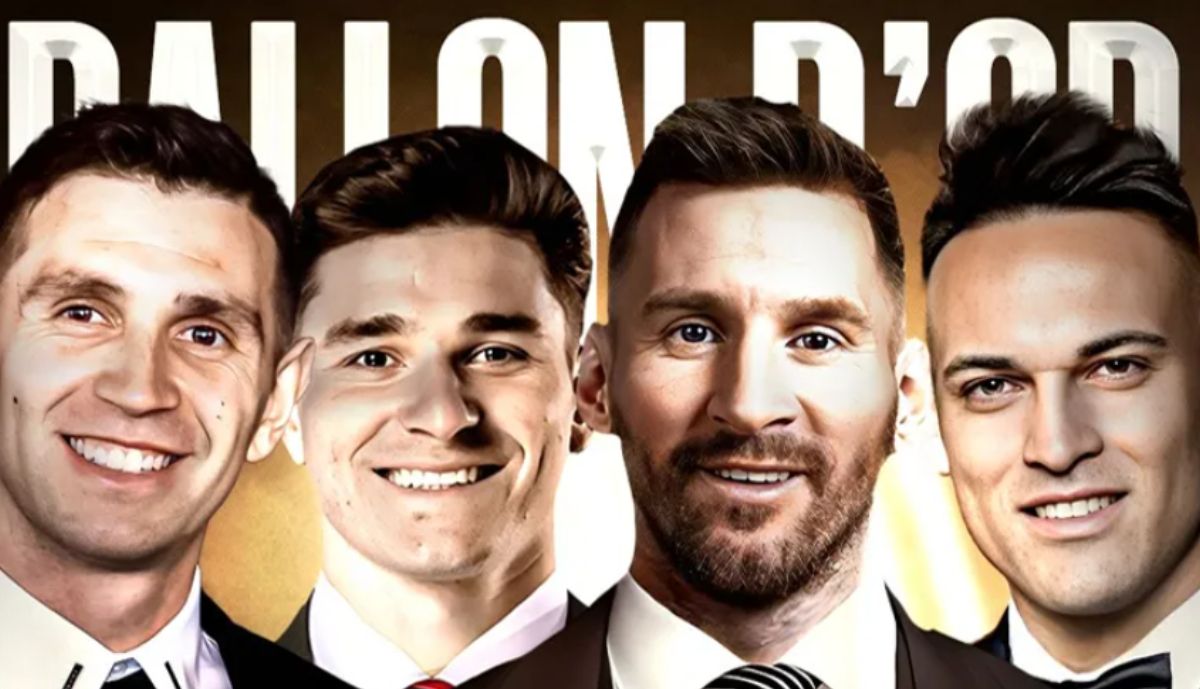 Tras dar a conocer a los 30 candidatos a quedarse con el premio, la revista francesa brindó diferentes imágenes de los candidatos al galardón. Ahora, el turno de los campeones del mundo: Messi, Dibu, Julián y Lautaro Martínez.