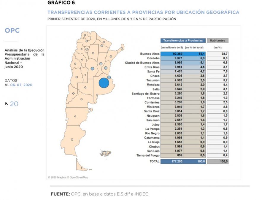 Según el estudio, que constituye un análisis de la ejecución presupuestaria del Estado nacional durante el primer semestre de 2020, ese monto no informado por la provincia tiene origen en programas de asistencia financiera que surgen de convenios firmados con el gobierno nacional, y en subsidios a la tasa de interés para préstamos solicitados al Fondo de Garantía Solidaria de ANSES.