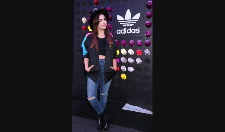 Lali eligió un crop top negro, unos skinny jeans de tiro alto y con roturas en las rodillas, y unas botitas de caña baja negras. Un look bastante clásico que transformó con un sombrero y una campera deportiva negra con detalles flúo. Su toque infaltable: los labios con rouge.