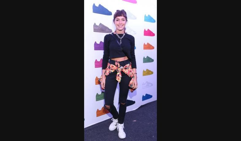 Cande eligió también un crop top negro de mangas largas y unos skinny jeans negros con roturas. Le dio color a su estilo con una camperita con estampa floral -que ató a las caderas- y unas zapatillas botitas blancas.Recogió su pelo y se puso un colgante súper canchero.