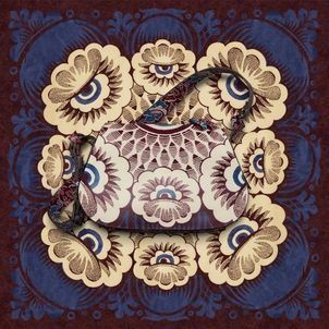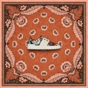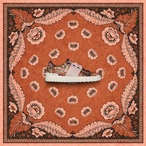 La campaña publicitaria que acompaña es llamativa, con los accesorios florales impresos establecidos en escenarios a juego, creando un efecto de collage sorprendente.