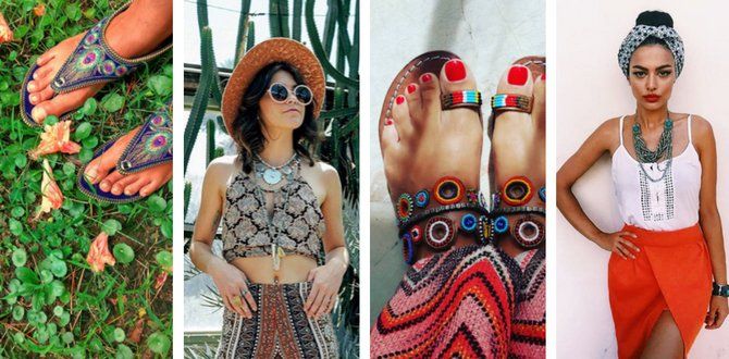 Los flecos, el cuero, los tonos terracota y la combinación de estampados (algo que está casi prohibido en otros estilos) definen al look étnico, que se luce mucho más en verano o primavera gracias a sus colores y el variado diseño de sandalias que siguen su línea.