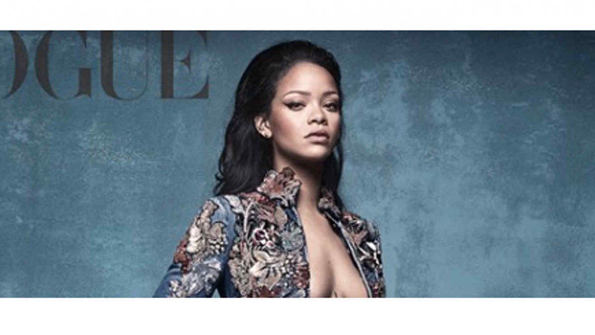 Hermosa luce Rihanna en la portada de la edición británica de Vogue del mes de abril. La cantante quien hace unos días lanzó su nuevo álbum ‘Anti’ posa con un sombrero blanco con una chaqueta adornada de flores y detalles plateados.