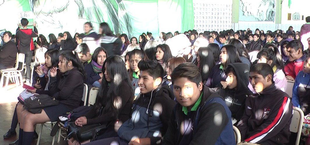 Manuela Poma, actual reina provincial de los estudiantes junto con integrantes de la Comisión Estudiantil y del ENTE Autárquico Permanente estuvieron presentes en un a un agasajo y charla para chicos del Comercial N°2 de Palpalá.