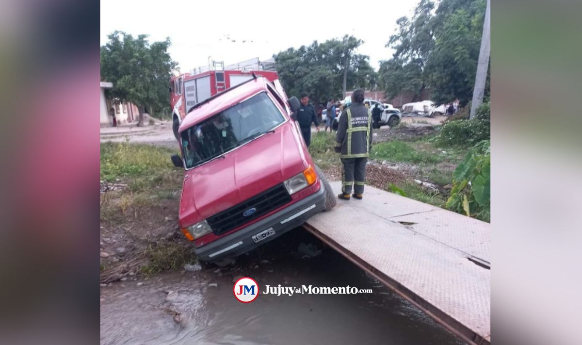 Una camioneta intentó cruzar un canal de riego por un puente precario, perdió el control y estuvo a punto de caer.