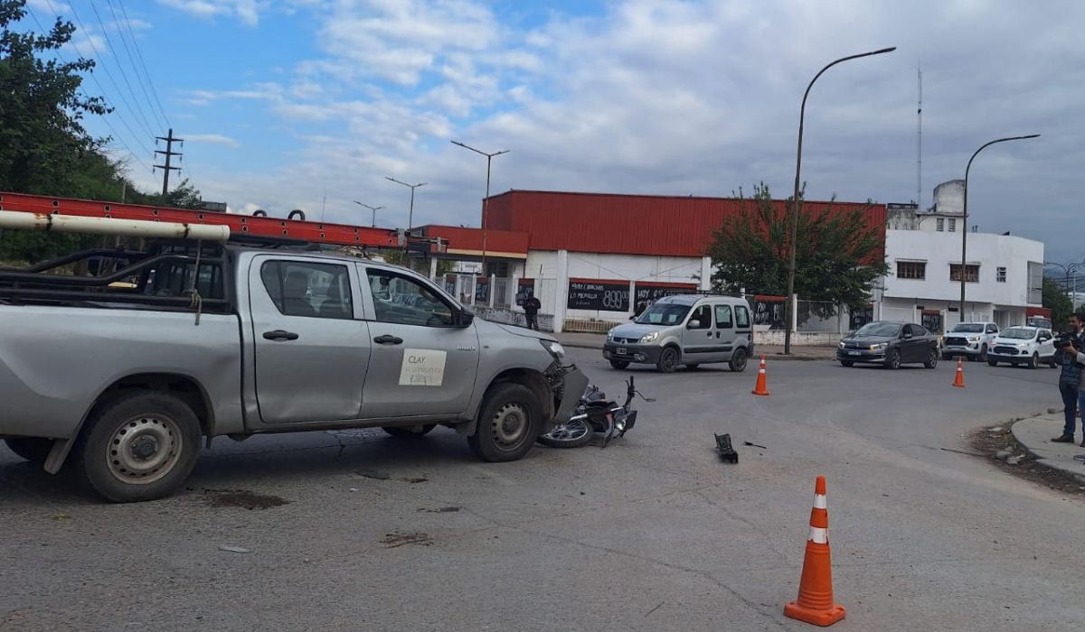 El siniestro vial ocurrió en Párroco Marshke y Corrientes del barrio Malvinas. Por fortuna no se registraron heridos de gravedad, aunque si provocó un caos vehicular en la zona.