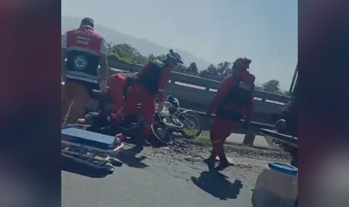 Motociclista derrapó y quedó atrapado entre el guardarrail.