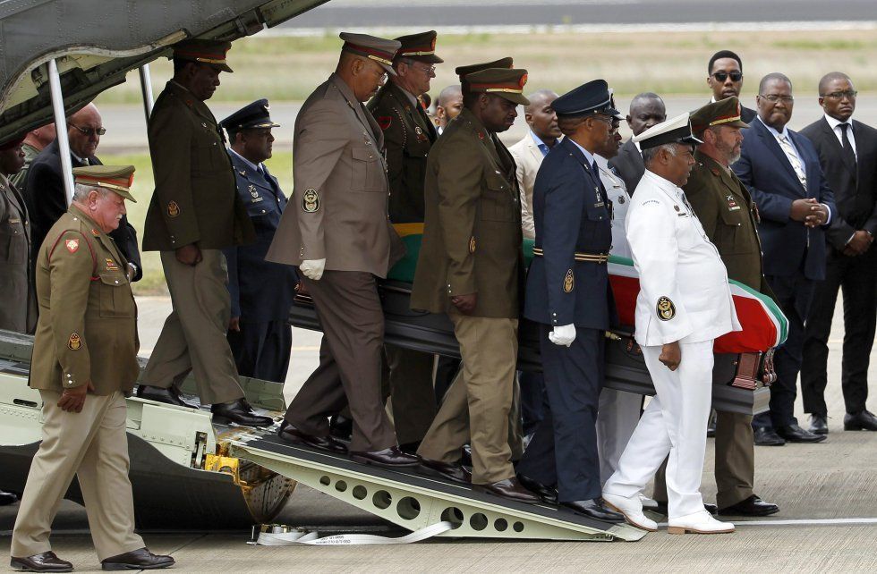 22 El ataúd del ex presidente sudafricano Nelson Mandela llega al aeropuerto de Mthata, en la provincia de Eastern Cape, para celebrar el funeral en su hogar ancestral en Qunu (Sudáfrica), el 15 de diciembre de 2013. EFE