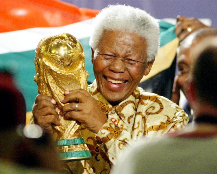 18 Nelson Mandera posa con el trofeo de la Copa del Mundo después de anunciarse que Sudáfrica acogería el Mundial de 2010 en Zurich (Suiza), el 15 de mayo de 2004.MICHAEL PROBST AP