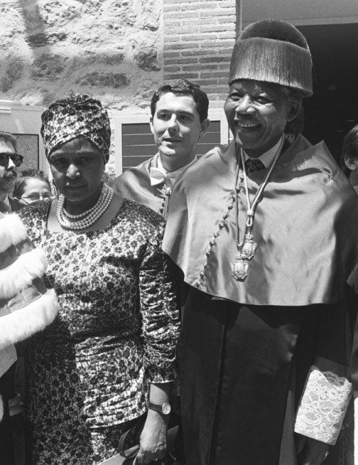 4 El líder antirracista sudafricano, Nelson Mandela, investido 'Doctor Honoris Causa' por la Universidad Complutense, en Madrid, durante la visita que realiza a España para agradecer el apoyo contra el "apartheid". En la imagen, junto a su esposa, Winnie Mandela, en 1991.ULY MARTÍN