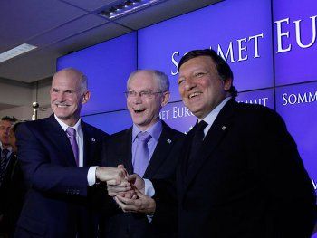 Al finalizar la reunión que se realizó en Bruselas destinada a fijar un segundo plan de rescate de Grecia, dirigentes de la Unión Europea y el FMI anunciaron que a encontraron una respuesta a la crisis.