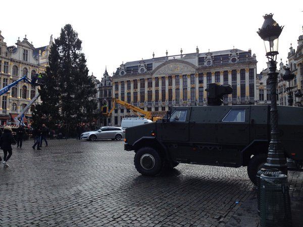 Los efectivos militares instalaron sus grandes camiones de combate frente a la Bolsa de Comercio, centros comerciales y la Gran Plaza de Bruselas, a la que sólo se puede acceder tras pasar un exhaustivo control que incluye chequeos de bolsos y detectores de metales.