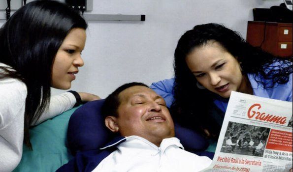En las fotografías se puede ver a Hugo Chávez junto a su hija leyendo el periódico cubano “Granma”.