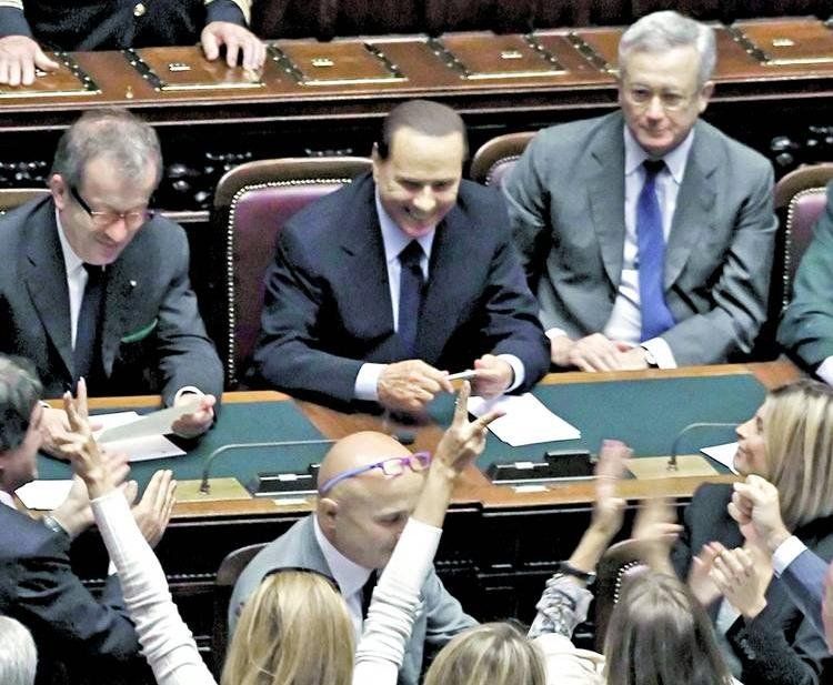 Italia es un país con régimen parlamentario. Los gobiernos nacen y mueren en las cámaras. Si Berlusconi hubiera perdido el sufragio en el aula, habría debido renunciar, como le reclaman no solo la oposición sino muchos sectores de la vida italiana. La actual Legislatura de cinco años concluirá su mandato en 2013 y Berlusconi, que ha sufrido un vertiginoso deterioro político y en su popularidad personal, envuelto en escándalos de índole sexual y de corrupción, trata de mantenerse en el poder hasta entonces. Pero su gobierno se ha demostrado ineficaz para afrontar la grave crisis económica global, europea e italiana. Los rígidos planes de austeridad puestos en marcha por Berlusconi, apremiado por la Eurozona y el Banco Central Europeo, agravan el estancamiento del país, que marcha a una nueva recesión en 2012. Los italianos han descendido al nivel de vida que tenían hace quince años y las perspectivas de recuperar el terreno perdido se hacen remotas.