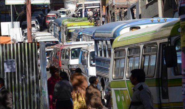 Calles y avenidas obstaculizadas con vehículos del transporte público y gente caminando desde muy temprano, es la característica que se mantiene invariable desde ayer, describió un reporte de la agencia noticiosa estatal ABI.