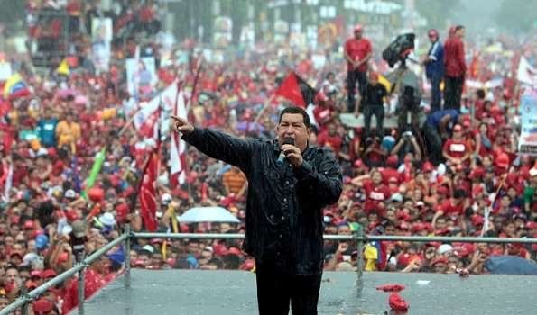 Bajo un feroz "palo de agua" -como le dicen en Venezuela a una lluvia intensa y repentina- que lo obligó a "ser breve, por estas circunstancias", Chávez renovó sus promesas para su eventual nueva gestión, volvió a cuestionar a su principal adversario, Henrique Capriles Radonski, y pidió "una avalancha de votos para abrir el domingo los portones del futuro".