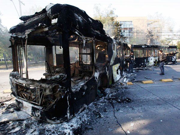 El Gobierno chileno de Sebastián Piñera anunció que demandará a la Justicia la aplicación de la Ley de Seguridad del Estado para querellar contra "grupos de encapuchados" que este martes 18 de octubre quemaron un autobús y encendieron barricadas en la primera de dos jornadas de movilizaciones por el conflicto estudiantil.