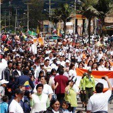 "Libertad, libertad", "queremos libre a Nohora, "no más secuestros", fueron las frases de los caminantes, que lucían carteles, flores, fotos y todo lo que pudiera recordar a la secuestrada.