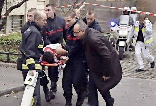 A las 11.30, tres personas encapuchadas, vestida de negro y fuertemente armadas ingresaron a la sede del semanario satírico Charlie Hebdo disparando con armas automáticas.