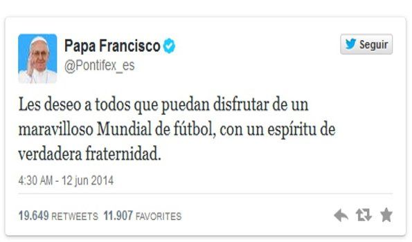 Gran dominador de las nuevas tecnologías, el Papa Francisco no dejó pasá la oportunidad que brinda el Mundial de Brasil, y dejó su reflexión y buenos deseos, por TV y Twitter.