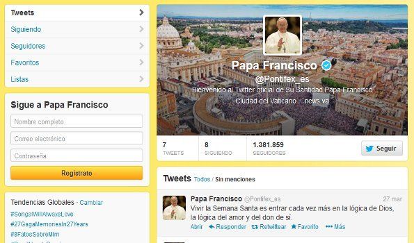 En la cuenta en castellano, el sumo pontífice cuenta actualmente con 1.607.606 seguidores.