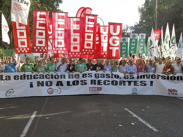 Los sindicatos aseguran que el presupuesto perderá dos mil millones de euros y que se destruirán entre 12 mil y 15 mil puestos de trabajo. Hoy son más de 40 mil los docentes que protestan.