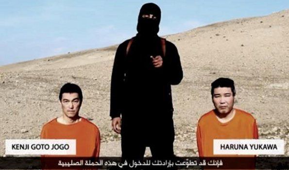 Haruna Yukawa y Kenji Goto Jogo, los japoneses secuestrados, aparecen arrodillados y vestidos con el habitual mono naranja que recuerda al que visten los presos de Guantánamo.