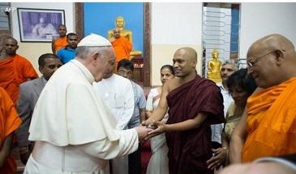 El papa Francisco visitó este miércoles un templo budista de Colombo, la capital de Sri Lanka, al volver del santuario mariano de Madhu, respondiendo a la invitación de un líder budista.