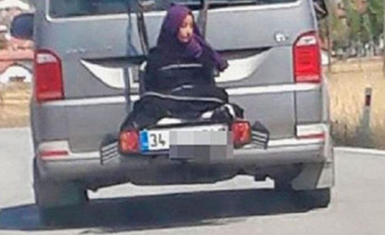 Ocurrió en Turquia, un padre transportaba a su hija en el porta bicicletas de su camioneta. El hechó quedó registrado en un video. Fue detenido.