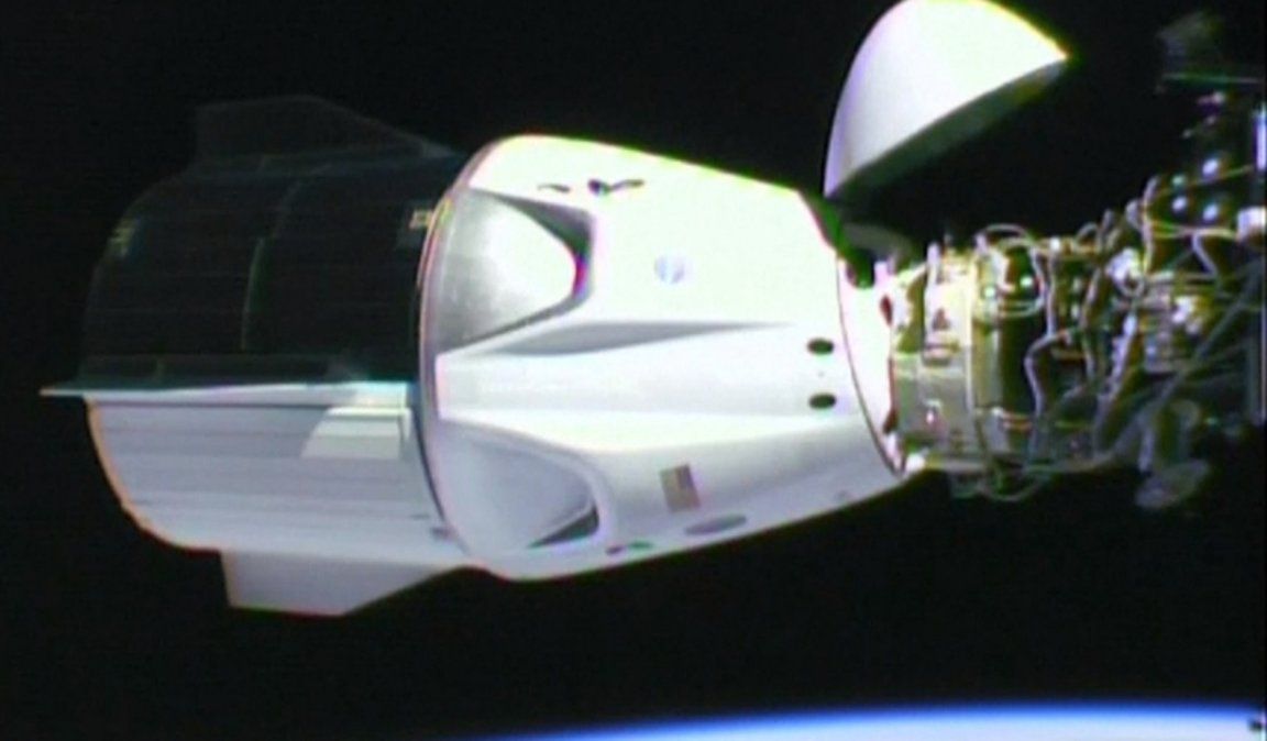 - La nave Crew Dragon, fabricada por Spacex y comandada por los astronautas Douglas Harley y Robert Behnken, llegó a la EEI tras 19 horas de vuelo.