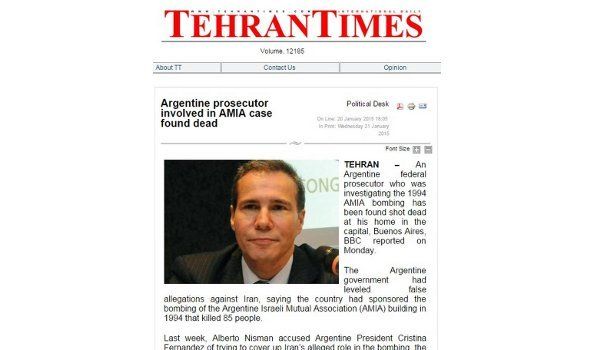 La prensa iraní habló de la muerte de Alberto Nisman por primera vez desde el domingo y se acogió a la teoría de Cristina Kirchner que el Fiscal Especial para la causa AMIA “se suicidó”.