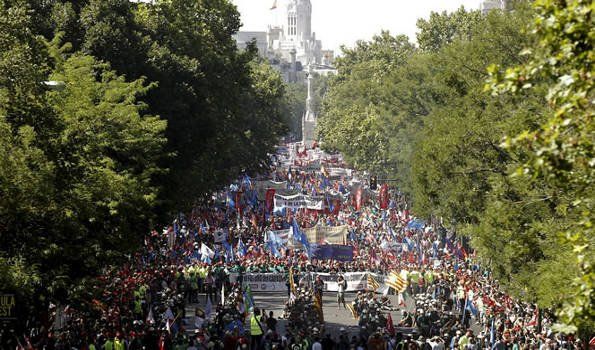 A la marcha se sumaron los máximos líderes sindicales, Cándido Méndez, de la Unión General de Trabajadores (UGT) e Ignacio Fernández Toxo, de Comisiones Obreras (CC.OO).