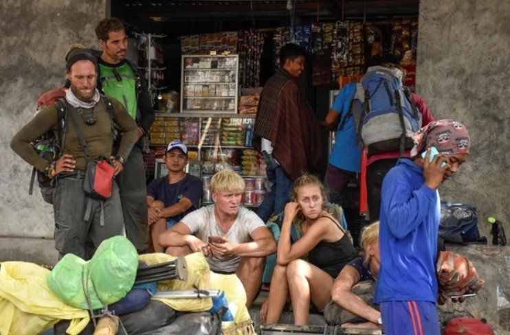 El temblor también desprendió rocas y lodo en el Monte Rinjani, bloqueando las rutas.
