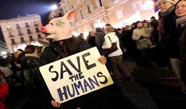 Lo españoles protestan contra los recortes del gobierno de Mariano Rajoy y los casos de corrupción en el gobernante Partido Popular y la Corona.