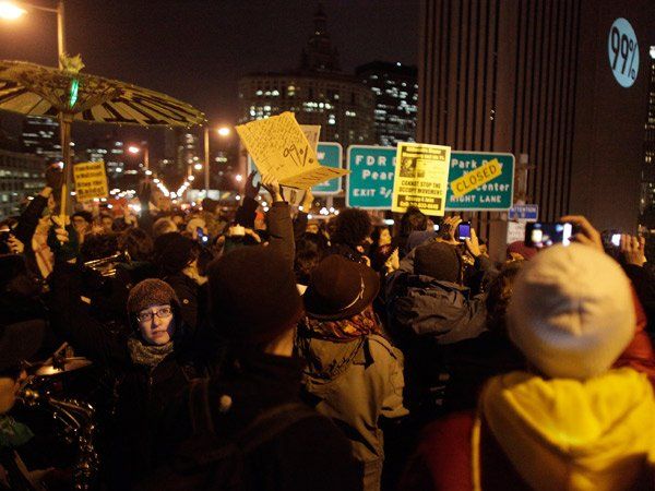 Horas antes, el movimiento 'Ocupemos Wall Street' bloqueó el acceso a la Bolsa de Nueva York, un evento que dejó más de 175 manifestantes detenidos y siete policías heridos.