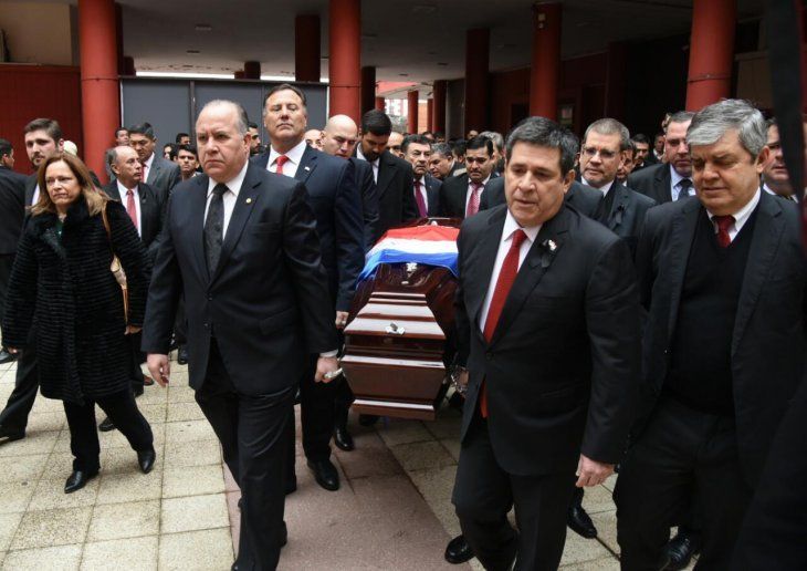 El féretro fue recibido por el presidente de la República, Horacio Cartes, familiares, autoridades de la zona y miembros del Congreso Nacional.