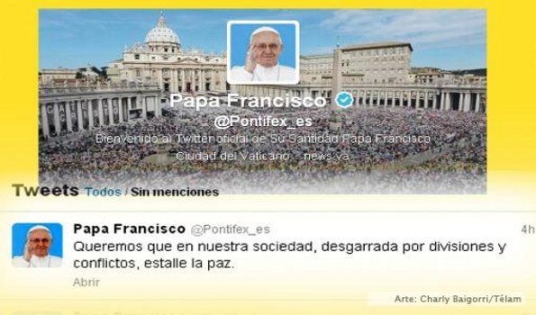 "Queremos que en nuestra sociedad destruida por divisiones y por conflictos estalle la paz", escribió hoy el papa argentino Jorge Bergoglio en su cuenta personal de Twitter, que se replica en nueve idiomas.