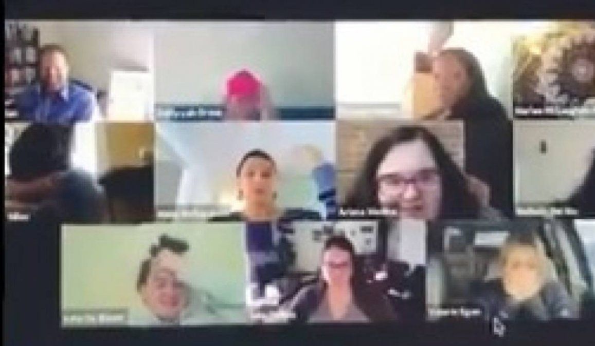 - La mujer se encontraba realizando una conferencia de trabajo, fue al baño y se olvidó de apagar la cámara.