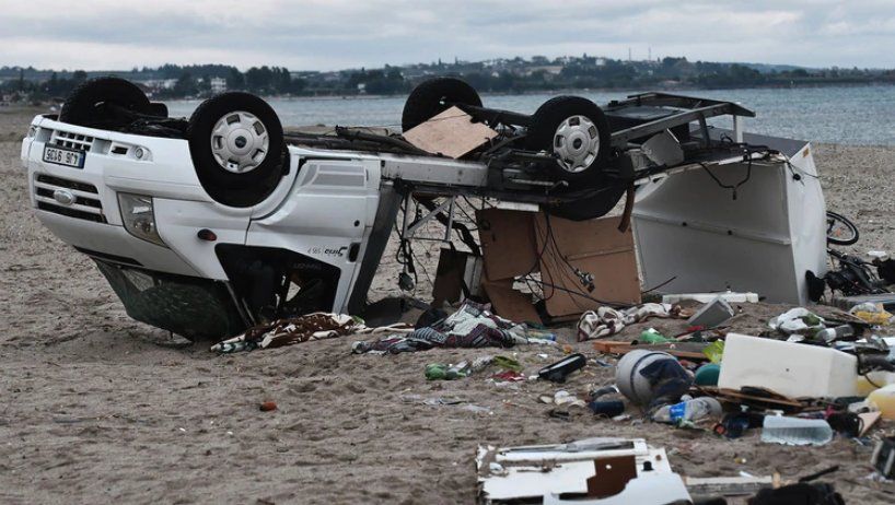 Y es que el viento levantó su caravana "como si fuera una caja de cerillas", cuenta Yannis Karabourniotis, propietario de una taberna de pescado a pocos metros.