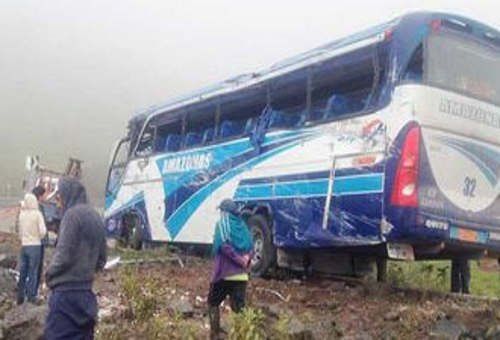 El accidente ocurrió en la madrugada de hoy cuando un autobús de la Cooperativa Amazonas, que cubría el trayecto de la ruta Tena –Quito en Ecuador, volcó por el exceso de velocidad.
