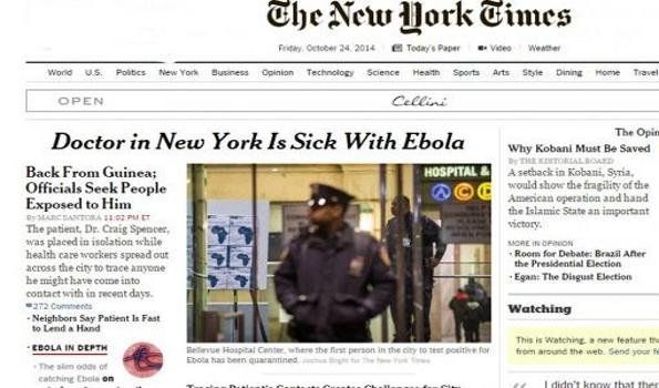 Lo confirmó el alcalde, Bill de Blasio y el enfermo es Craig Spencer, quien estuvo hasta el 14 de octubre trabajando en África con Médicos sin Fronteras. Las autoridades pusieron en cuarentena a tres amigos y a la novia del paciente.
