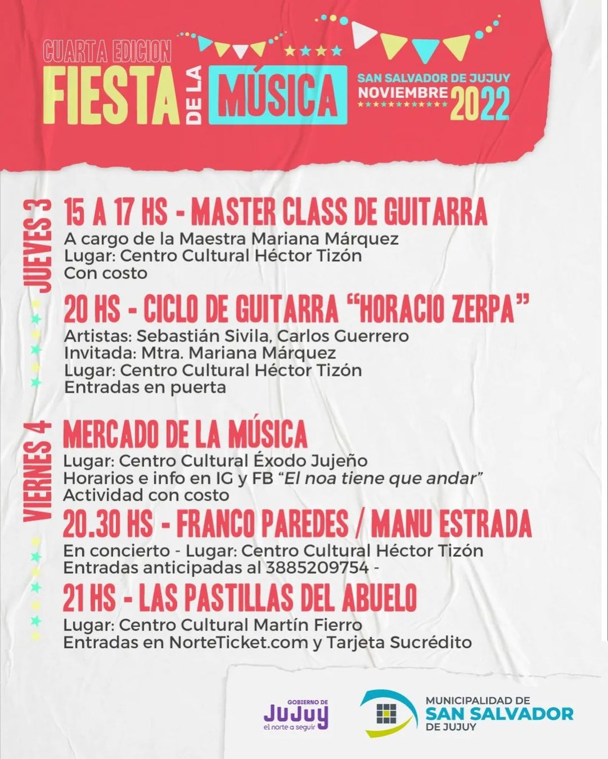 El mismo día, en el Centro Cultural Éxodo Jujeño se realizará el “Mercado de la Música” (con costo) y por último a las 21:30 hs. el grupo Los del Portezuelo se presentará en el Centro Cultural Martín Fierro (entradas en NorteTicket.com).