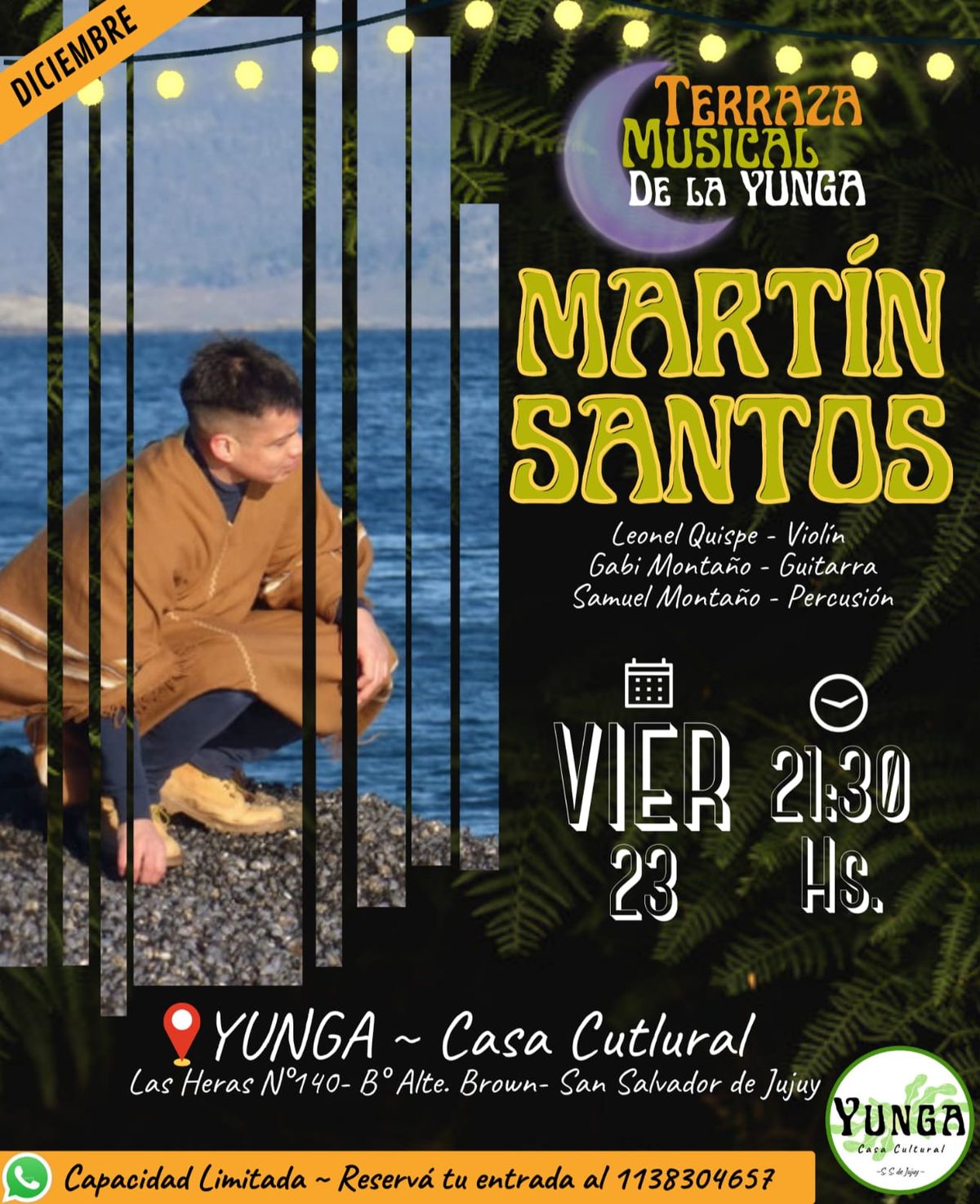 Este viernes 23 de diciembre a las 21.30 hs, en la Casa Cultural Yunga, se presentará el músico Martín Santos junto a su banda.