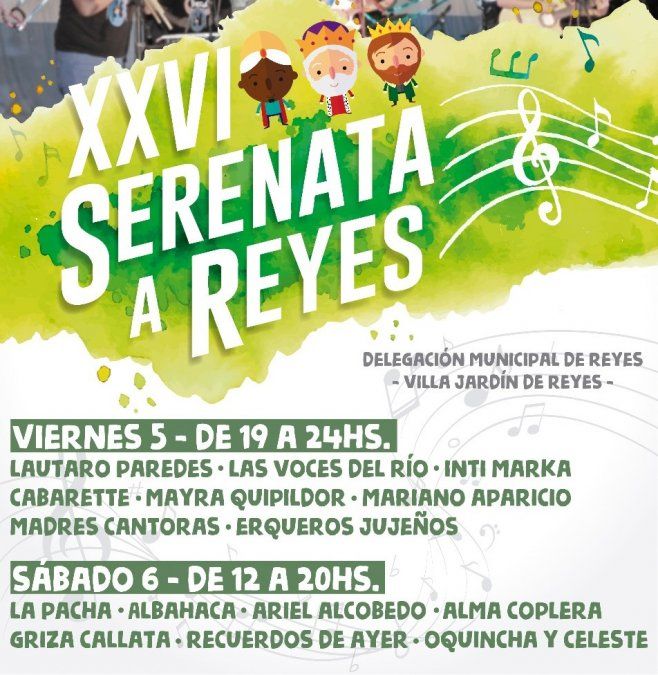 Este viernes 5 y sábado 6, la Delegación Municipal de Reyes será el punto de encuentro para una nueva edición de la Serenata a Reyes. A lo largo de dos días se presentará una importante grilla de artistas locales.