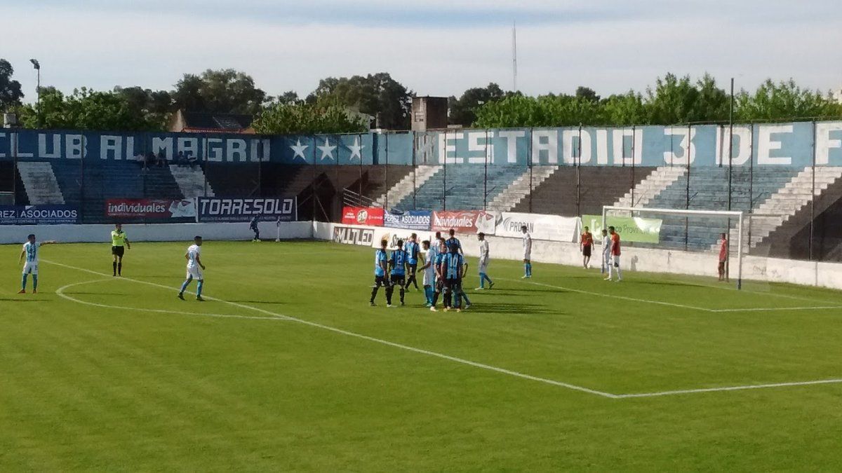 En el primer tiempo, Almagro tuvo la iniciativa y las situaciones más claras con dos cabezazos. Primero del zaguero Di Benedetto bajo el arco y luego con otro del delantero Nicolás Ramos minutos más tarde.
