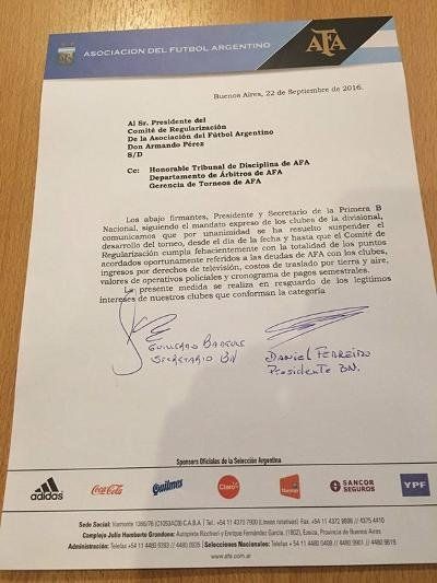 Daniel Ferreiro (Presidente de la B Nacional) dijo “Es una medida en defensa de nuestros clubes, que están siendo desfinanciados por falta de gestión”. Al mismo tiempo, aclaró que no es ni paro ni un lockout.