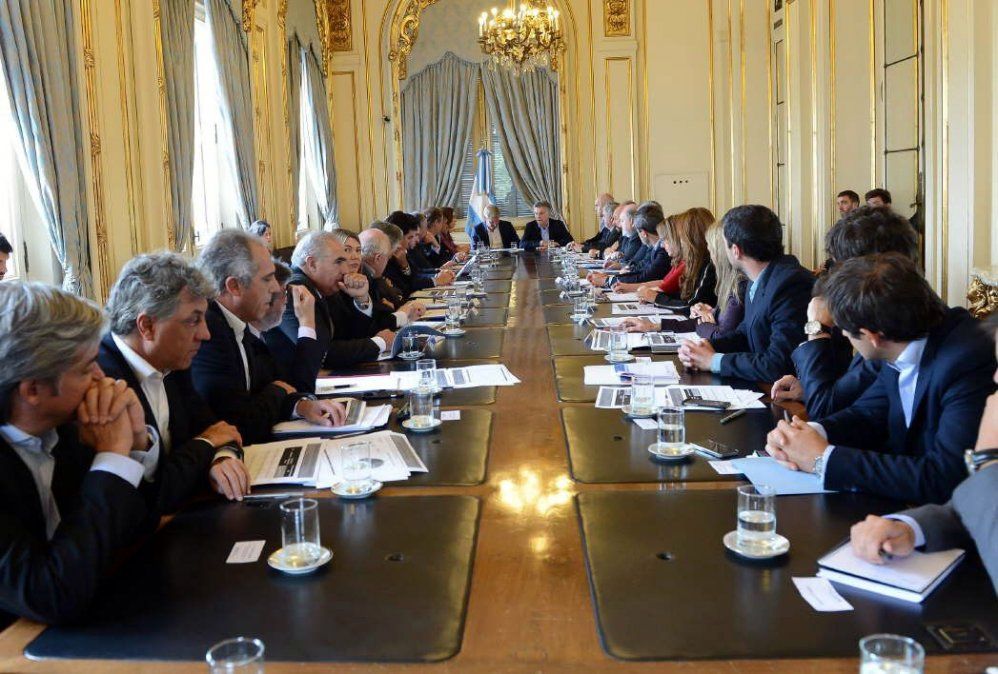 En Casa Rosada, el ministro del Interior, Rogelio Frigerio recibió a los mandatarios provinciales y acordó la restitución gradual del 15 % de la coparticipación que hoy retiene el ANSES y les dará más fondos. Hubo amplio apoyo a la ley para salir del default.