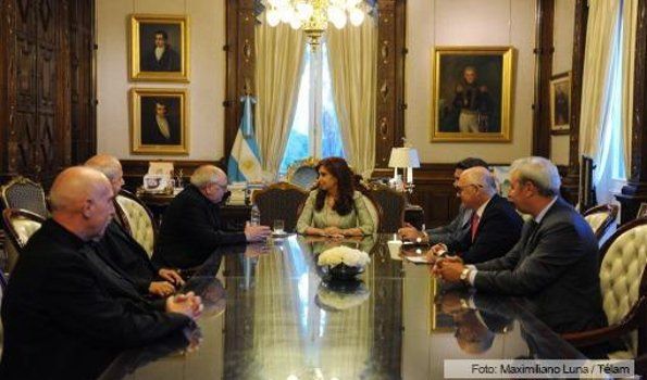 La presidenta Cristina Fernández de Kirchner recibió este lunes a los integrantes de la Comisión Ejecutiva de la Conferencia Episcopal, quienes le llevaron a la jefa de Estado sus saludos de Navidad y le transmitieron el mensaje elaborado por la 169° Comisión Permanente "Y en la tierra paz a los hombres".